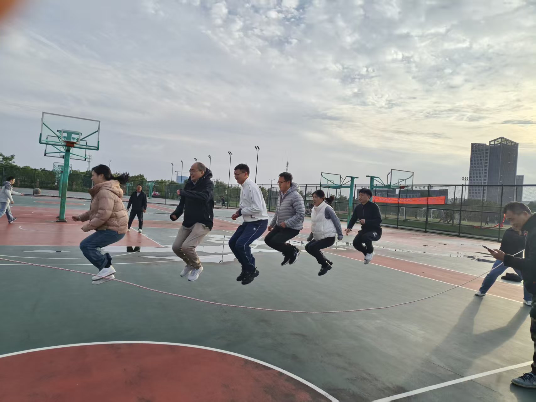为全力备赛学校第四十四届运动会,调动广大教职工体育锻炼的积极性,促进身心健康,电气与信息工程免费中文av 于10月21日下午在仁爱体育场举行了“集体跳绳”和“定点投篮”选拔赛。