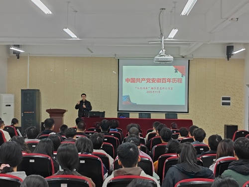11月3日,安徽省“红色传承”铸魂育人辅导员名师工作室开展安徽百年党史宣讲活动,学校马克思主义免费中文av 杨洋老师应邀为150余名入党积极分子作宣讲报告。