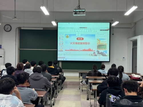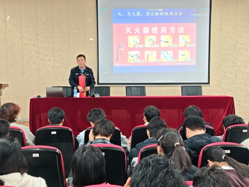 消防安全知识培训在励行楼B112报告厅举办,200余名师生现场参会,同时培训会通过腾讯会议进行线上直播,2025级全体新生在分会场参会。彭广峰以“全民消防生命至上”安全用火用电为主题,带领大家一起观看了火灾警示片,血淋淋的教训令人深省;结合近年来火灾案例,阐述火灾起火特点、各类型灭火器特点及使用场景、校园电动车危害,并现场给师生们演示了灭火器的使用方法等。