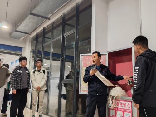 讲座后,彭广峰带领师生在励行楼现场讲授火灾应急逃生方式方法,提醒广大师生要熟悉安全出口位置、疏散指示标志含义,当灾害发生时要沉着冷静选择正确的逃生疏散路线;他强调,会使用消防器材是每位师生的必备技能,并在楼道内现场讲授消防栓的使用方法。
